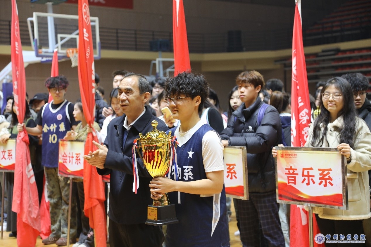 颁奖环节将闭幕式推向高潮。李新等校领导为获奖单位和个人颁发奖杯、奖牌。本届篮球赛共产生学生男子组、女子组及教职工组等多个奖项,其中生物系代表队获得学生女子组冠军,电子系代表队和教育系代表队分别获得学生男子组、女子组亚军,会计系代表队和计算机系代表队获得学生男子组、女子组季军。在教工组中,行政队获得冠军,生化队获得亚军,崇文队获得季军。