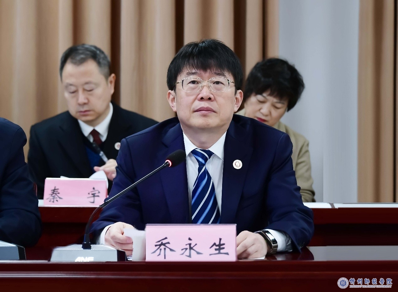 乔永生在致辞中简要介绍了忻州市情概况、学校办学历史与发展现状,以及近年来我校大力发展教师教育、深化师范类专业建设等有关情况,表示建校67年来,学校始终坚定社会主义办学方向,坚守师范主业、深耕教师教育,先行先试推进协同育人模式改革,推动师范专业办学水平大幅提升、师范教育特色愈加鲜明。他指出,学校将把此次认证作为推动全方位高质量发展的关键一招、重要一环,持续深化对认证理念的理解与实践,进一步优化师范类专业结构,深化教育教学改革,强化师范生综合素质与实践能力培养,努力把师范教育底色擦得更亮、招牌打得更响,为师范强教、教育强国作出新的更大贡献。